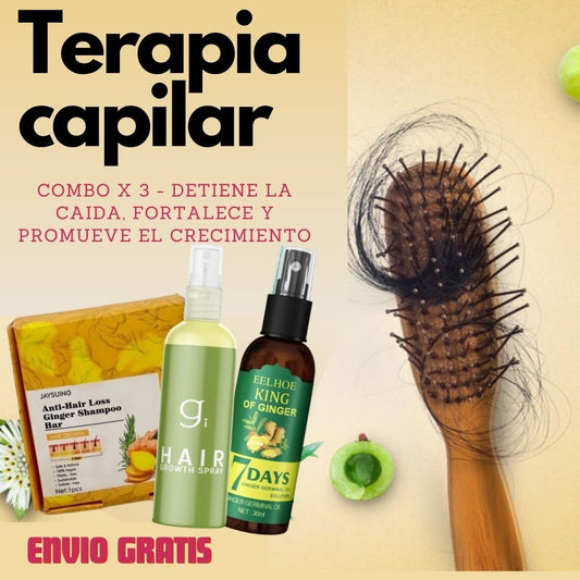 TERAPIA CAPILAR PREMIUM COMBO X3 - DETIENE LA CAIDA, FORTALECE Y PROMUEVE EL CREMIENTO