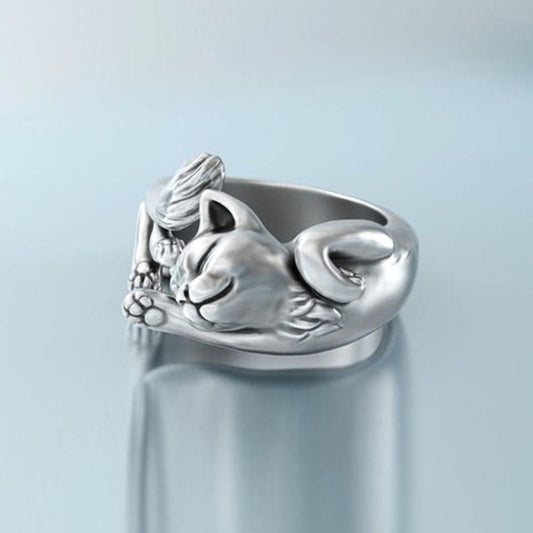 😺Anillo de Gato Durmiente (Ajustable)🥈🔥PAGA 1 LLEVA 2🔥¡ÚLTIMAS UNIDADES!🔥